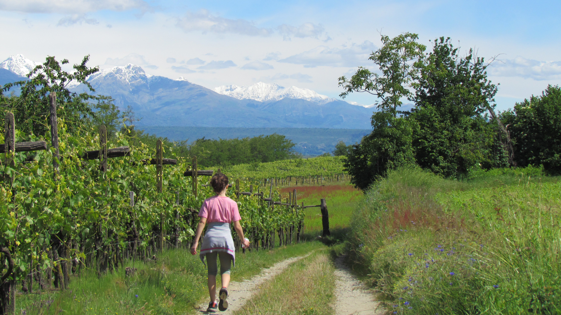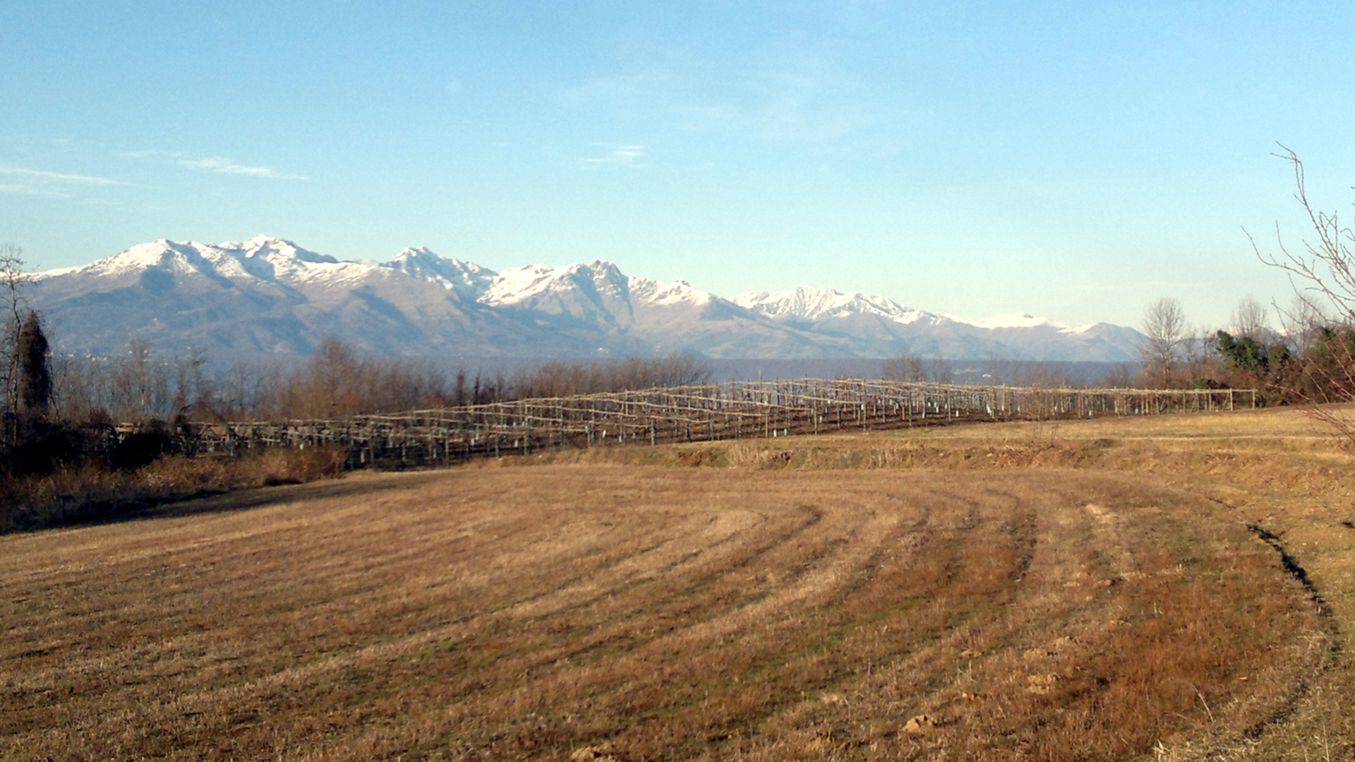 Tornando al bivio in cui l’Itinerario SPB lascia l’Itinerario AV, quota 245 m slm, la nostra traccia procede in discesa su una dolce curva a sx per seguire grossomodo la direzione ovest-est e attraversare alcune radure e alcuni frutteti. Il tracciato scende immerso nuovamente nel fresco bosco collinare, nel punto più depresso supera alcune risorgive e, risalendo, giunge alla borgata “Viscano Superiore” quota 235 m slm. Di qui procede su un tratto asfaltato ma assolutamente gradevole e lontano dal traffico veicolare, procedendo lungo la direzione sud-nord parallela al vicino corso del Fiume Dora Baltea sino ad attraversare le cascine di “Viscano Inferiore” e dopo 1500 m giunge alla SP 81 (al km 17,6) in prossimità dell’ingresso nel Comune di Vische ove spicca un pilone votivo denominato “Capela at Pignuchin”, quota 243 m slm. Dal Castellazzo di Caluso sino a qui sono stati percorsi circa 7,6 km; entrando nel paese di Vische è possibile sostare per un rifornimento di acqua e di prelibatezze locali.
